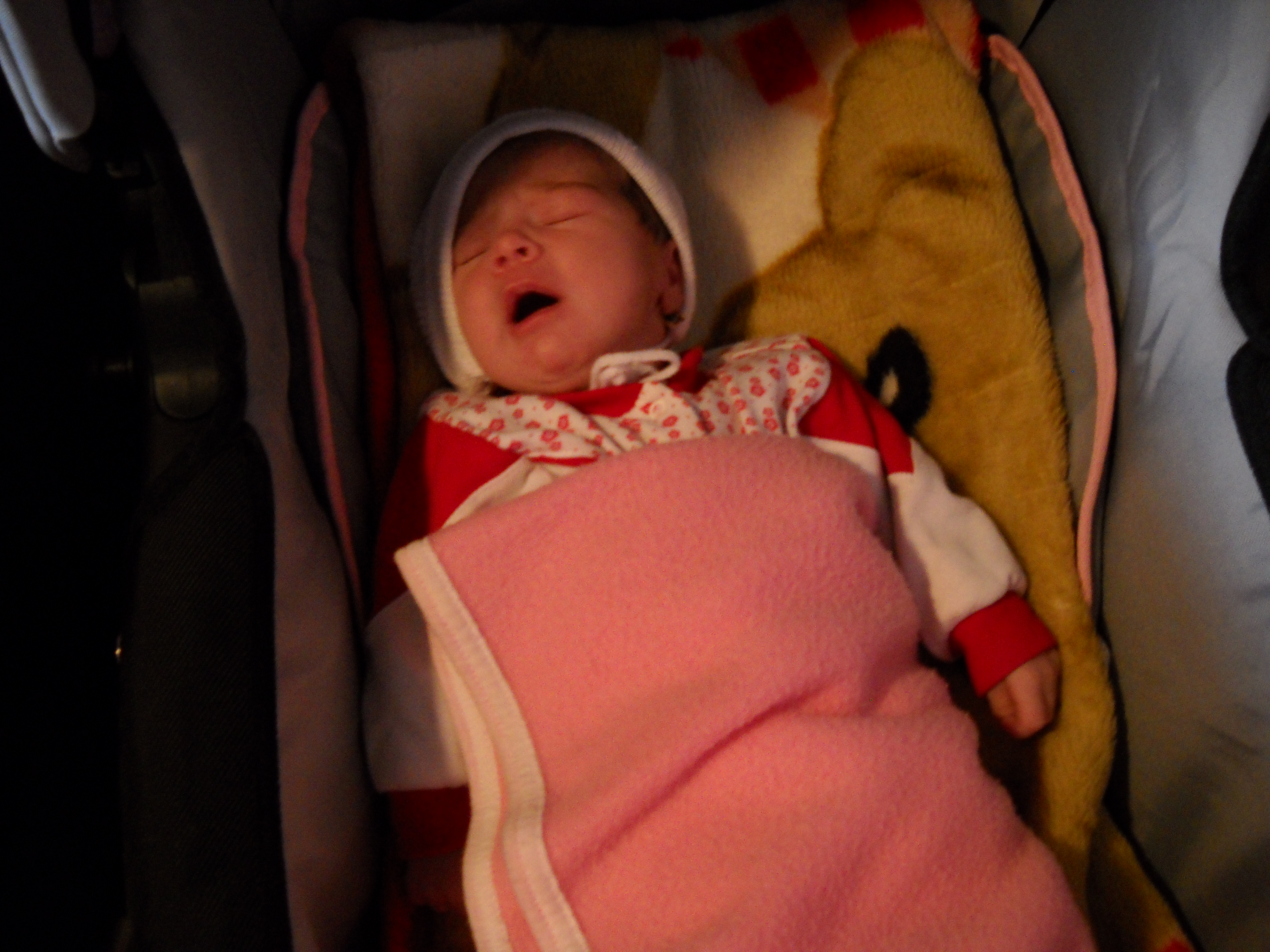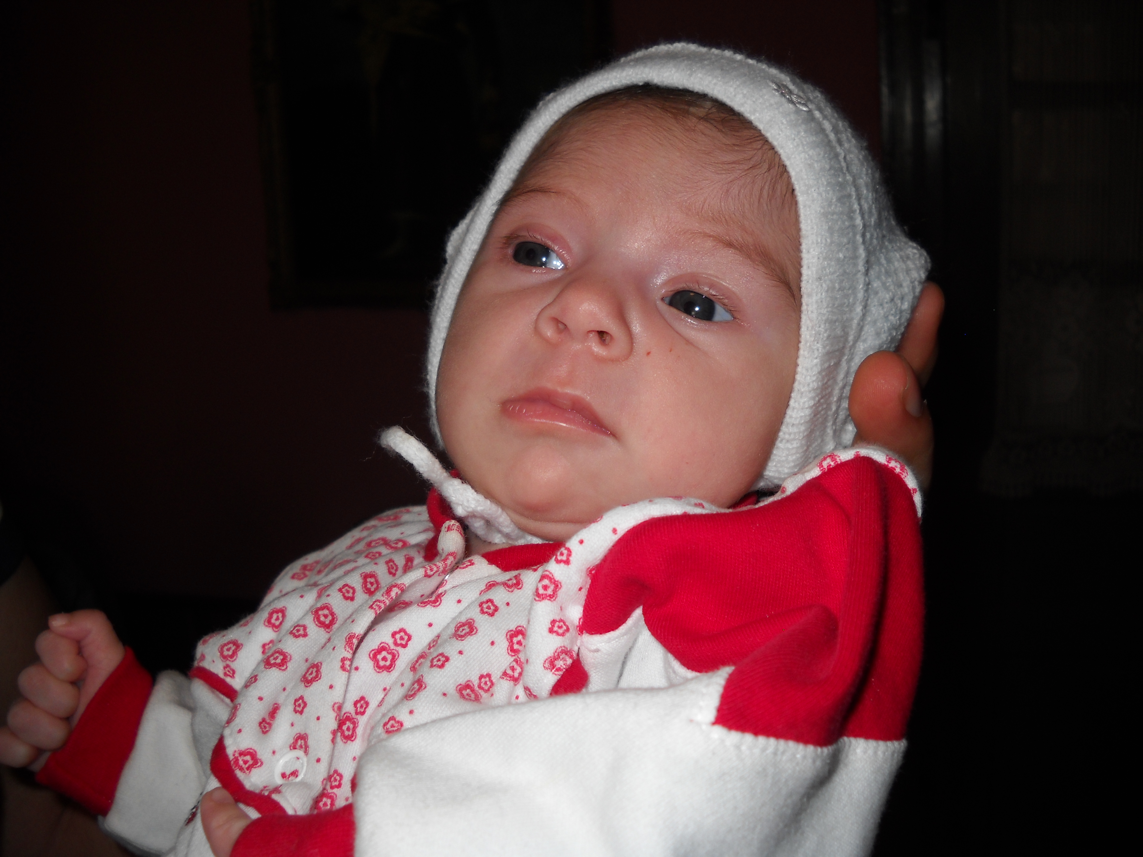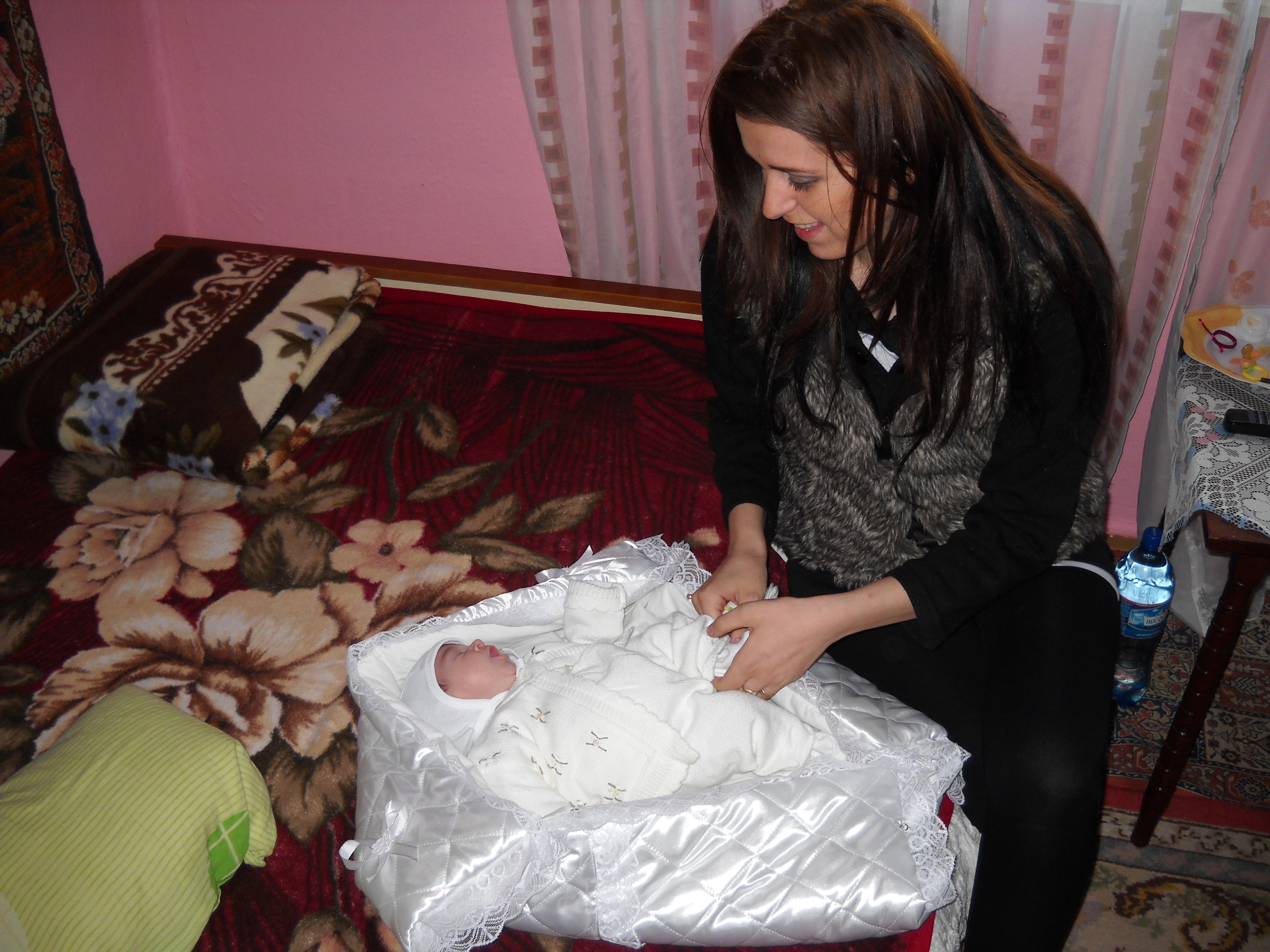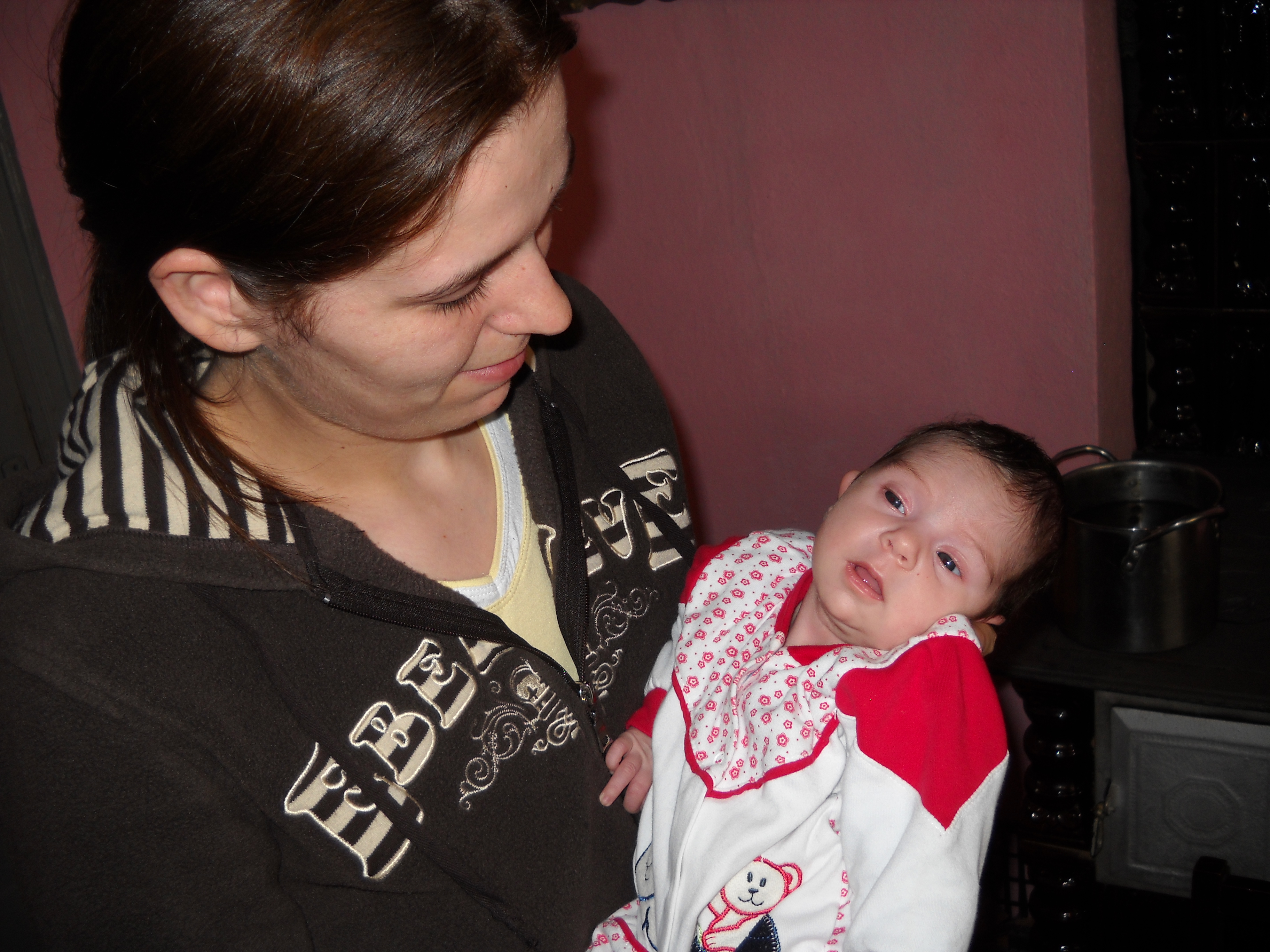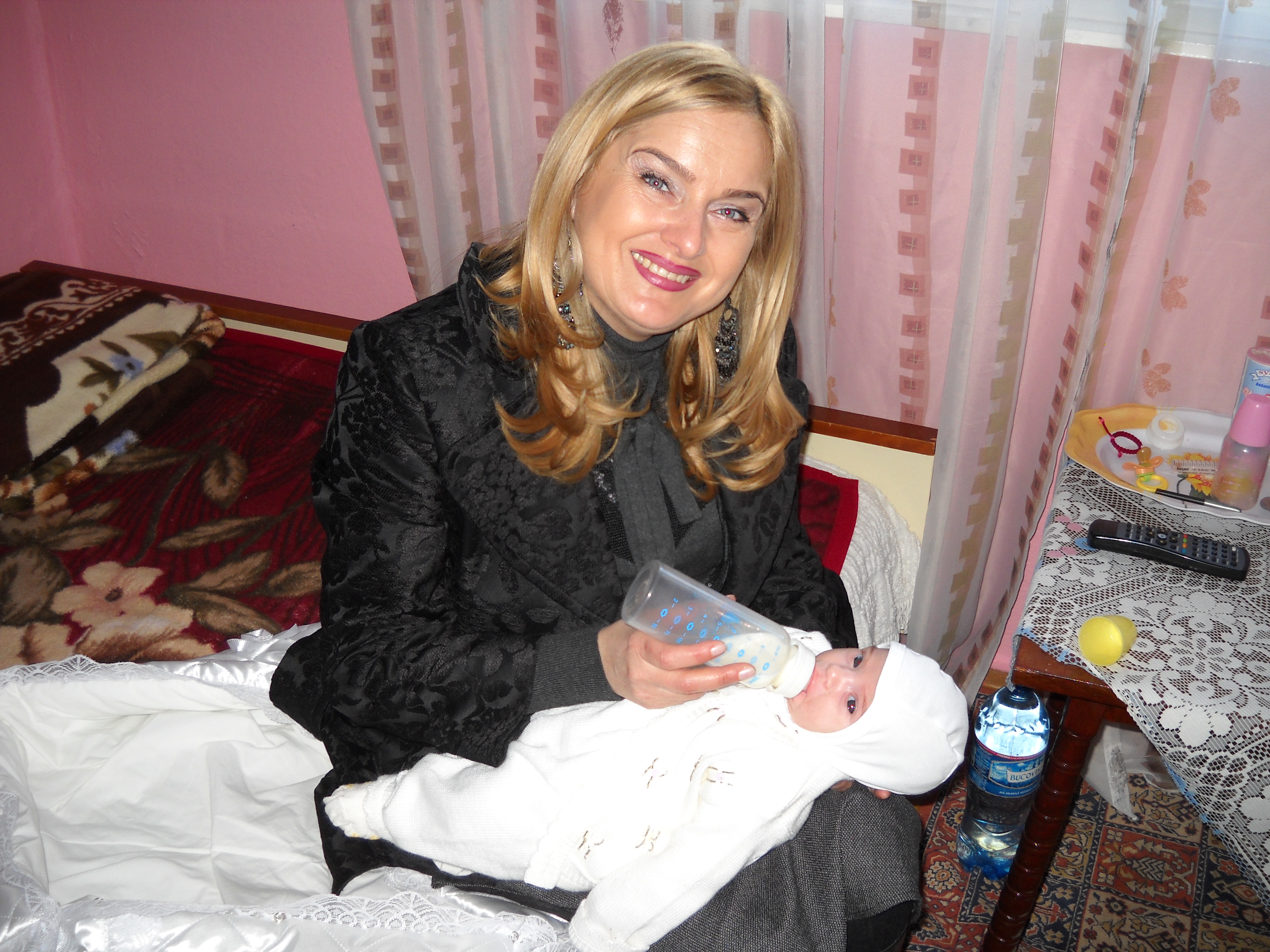Mănâncă bine – am văzut când Neia o hrănea cu biberonul -, zâmbeşte câteodată fără motiv şi nu are colici decât rar. 😉 Ce mai, ne-a cucerit şi ne e atât de dragă! Părinţii ei, Mirela şi Cătălin, au de ce să fie fericiţi!