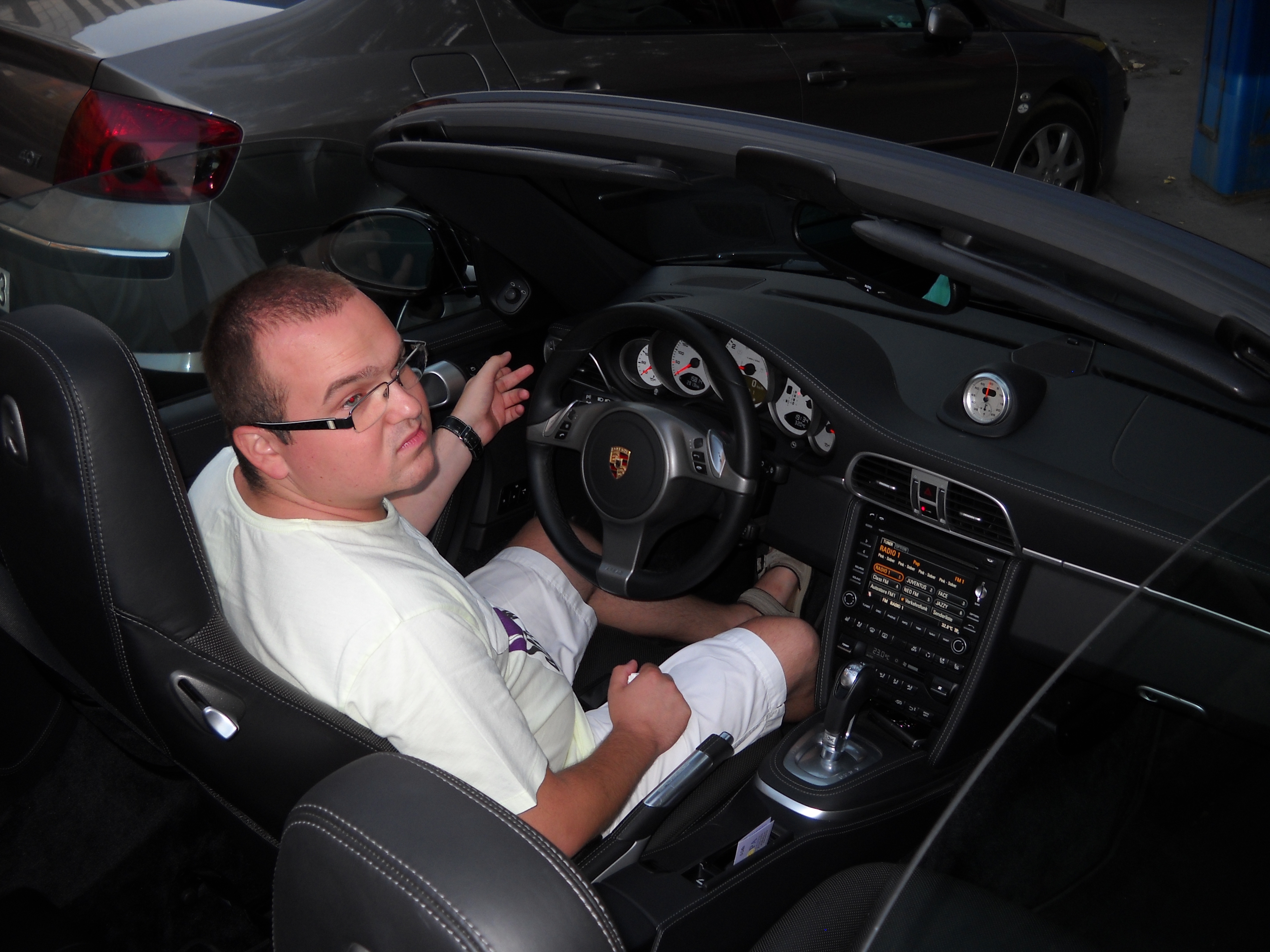 Ca s-o scurtez și să nu mai trec prin toate etapele devenirii mele 😉 , am ajuns după 30 și ceva de ani să conduc ori măcar să urc în mașini pe care înainte doar le visam. Nu fac din asta un titlu de glorie, oricum nu e meritul meu – Cineva acolo Sus mă iubește. A fost mai întâi Opelul Vectra, apoi Merțanul C 200 al lui fratelo, apoi salonul de la Geneva din 2009, un Ferrari roșu adus de Vlad Sturz, a venit Eosul – superbbbbbbbb, îl ştiu pe de rost -, apoi Skoda de la TVS 😀 😀 – aici glumesc, evident – și, recent, Porsche-ul lui Aspi. Din păcate, nu l-am condus, dar am făcut o mișcare prin Budapesta cu el, pe locul din dreapta. Un fel de semi-test drive.