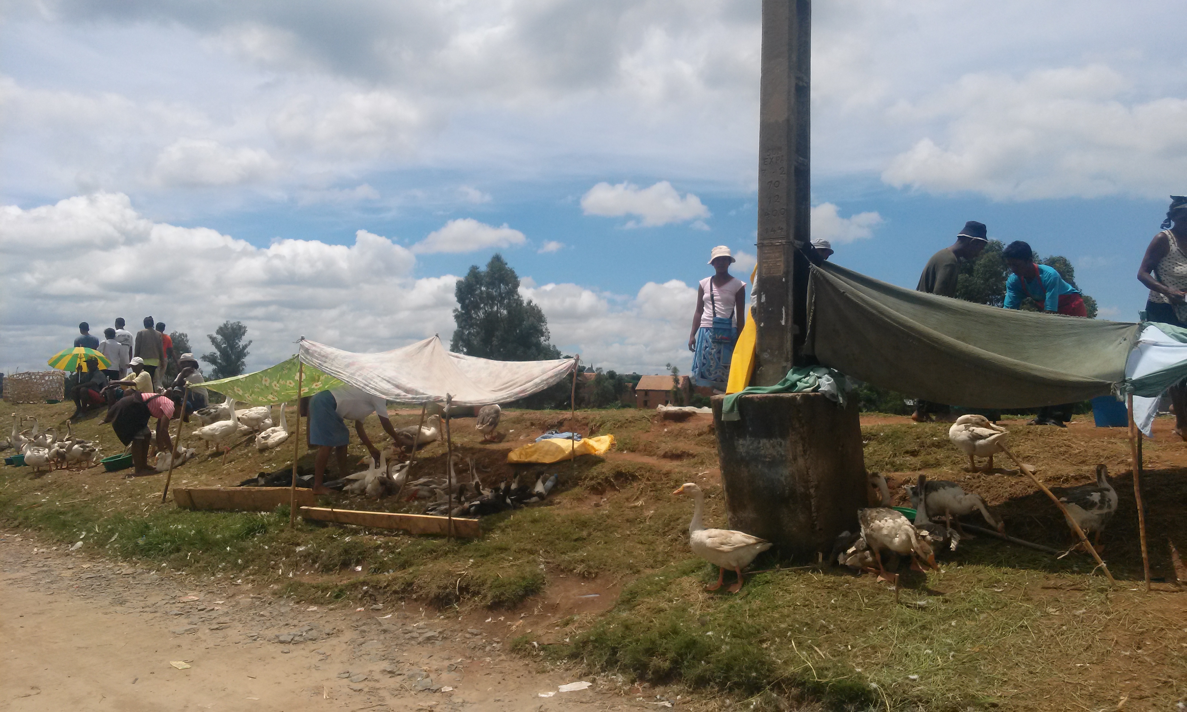 Nu lipsesc cei care vând animale la margine de drum. Am văzut aşa ceva pe şoseaua de la aeroport spre Antananarivo. Şi tot acolo, dar nu numai, am observat locuri în care se făcea cărămidă, care era luată cu cărucioarele şi transportată la destinatar. Ori materiale de construcţii – piatră spartă mai ales – cărate în acelaşi mod sau cu spatele. 🙁