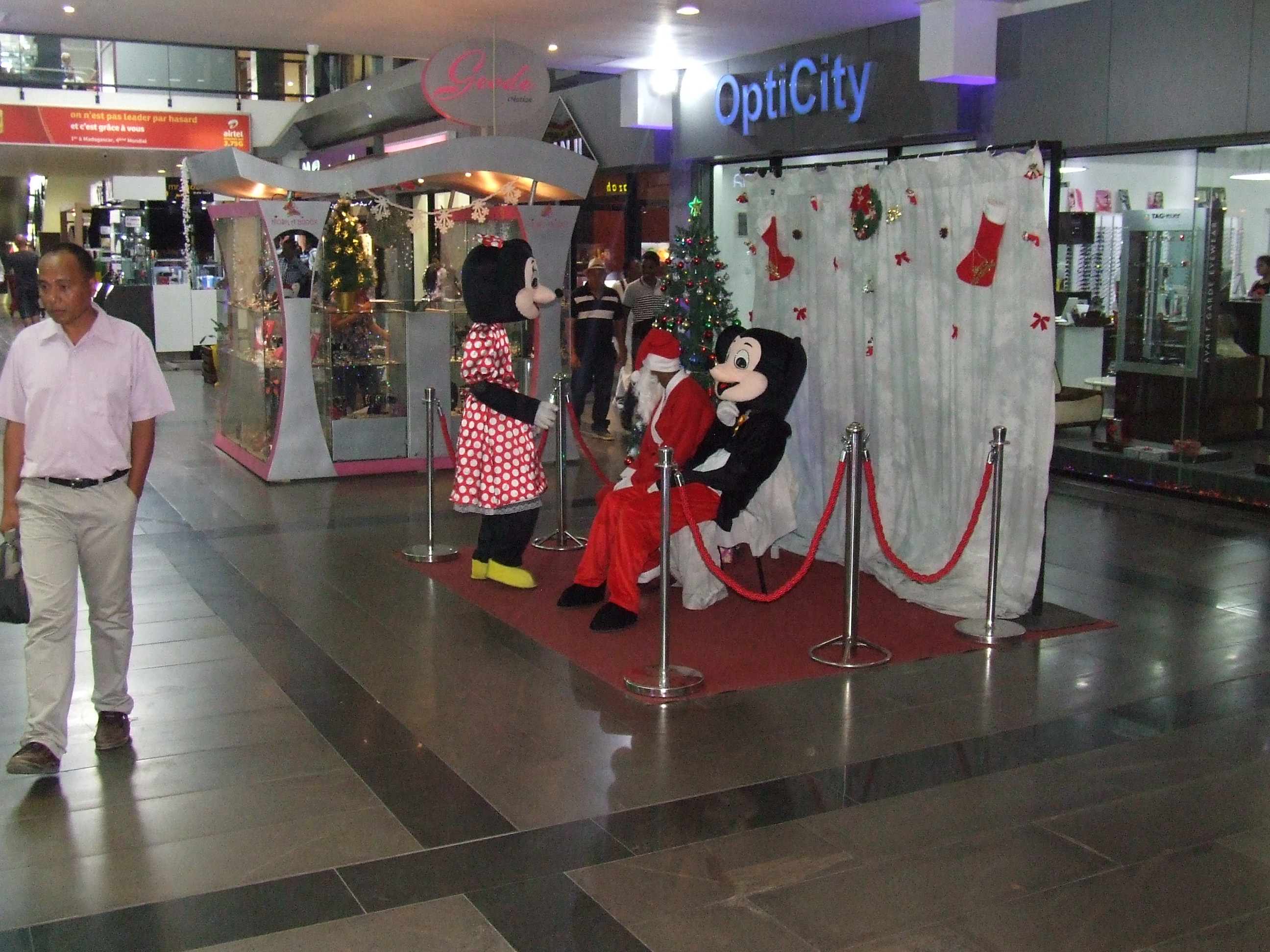 Mos Craciun Ivato Madagascar brazi pe strada Madagascar Mos Craciun mall Antananarivo Madagascar oameni la mall Antananarivo Madagascar