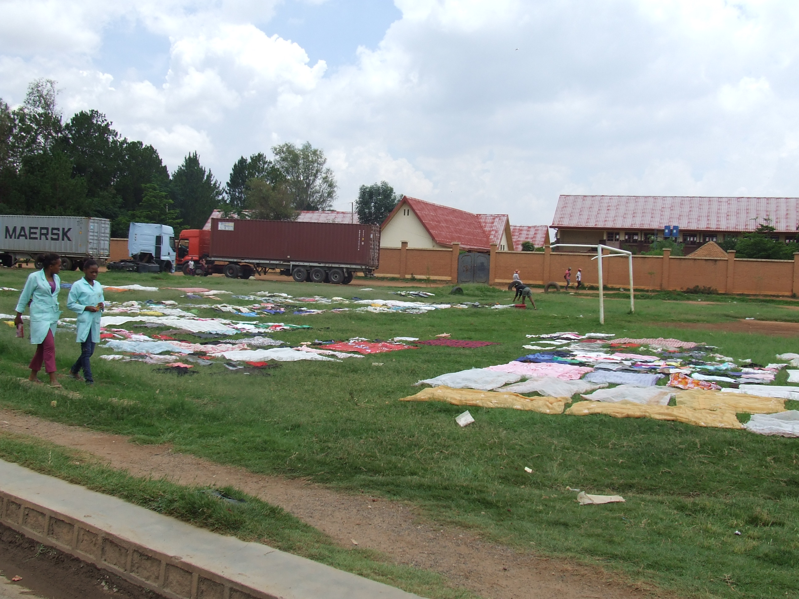 Şi, că tot veni vorba de haine, am văzut o chestie interesantă: pentru că multe case din Madagascar nu au apă curentă sau se întrerupe des, multe femei îşi spală hainele la nişte spălătorii publice, construite în mai multe zone. Pe langa asta, şi apa este adunată în bidoane tot de la astfel de cişmele publice.