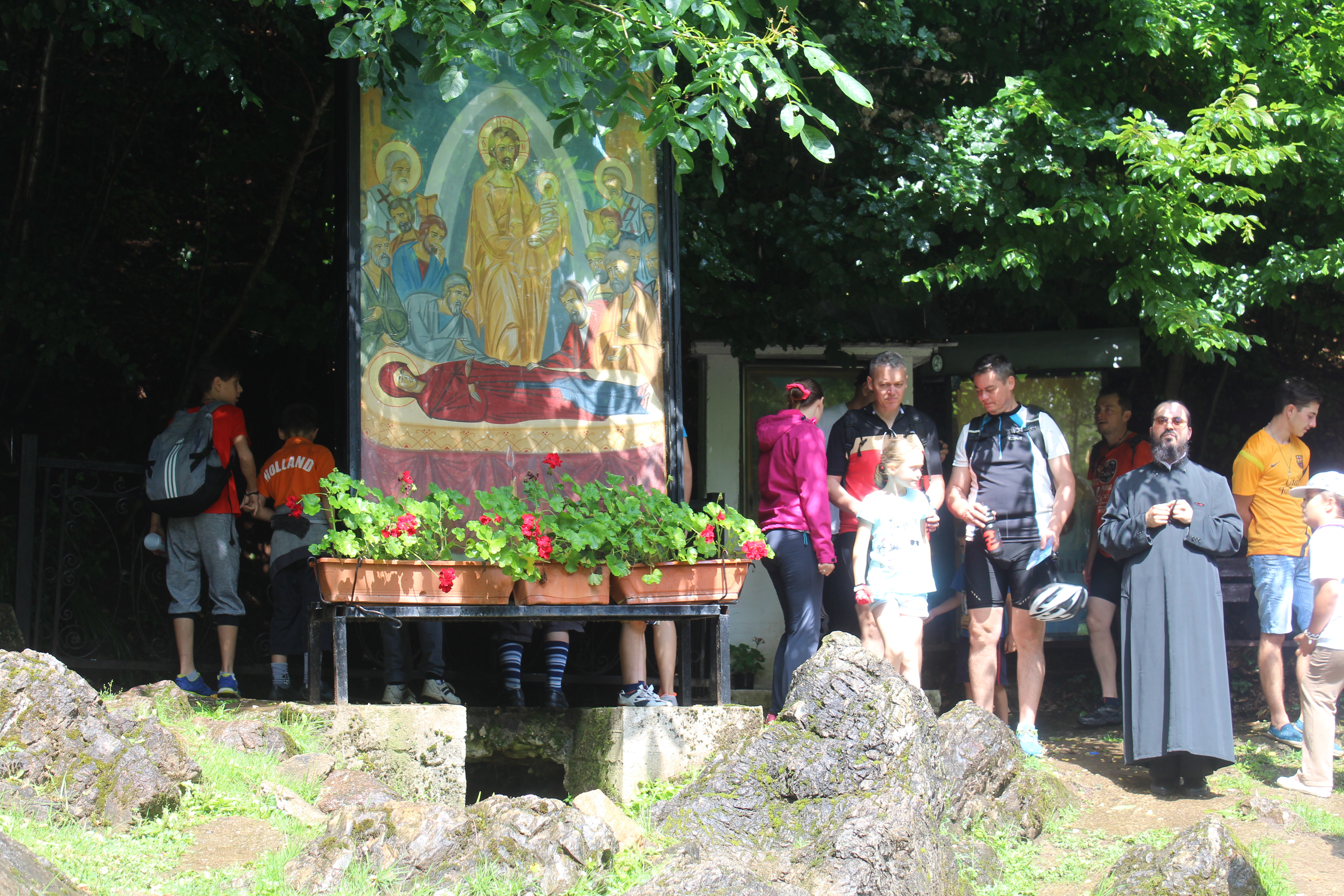 Şi uite aşa, pedalând uşor, turiştii au ajuns şi la Mănăstirea Izbuc, cea mai veche din judeţ şi loc de rugăciune a peste 30 de călugări. S-a făcut un tur al lăcaşului, s-a mâncat o pancovă 😉 , unii sau mai gândit şi la cele sfinte… Mai avem nevoie şi de astfel de momente.