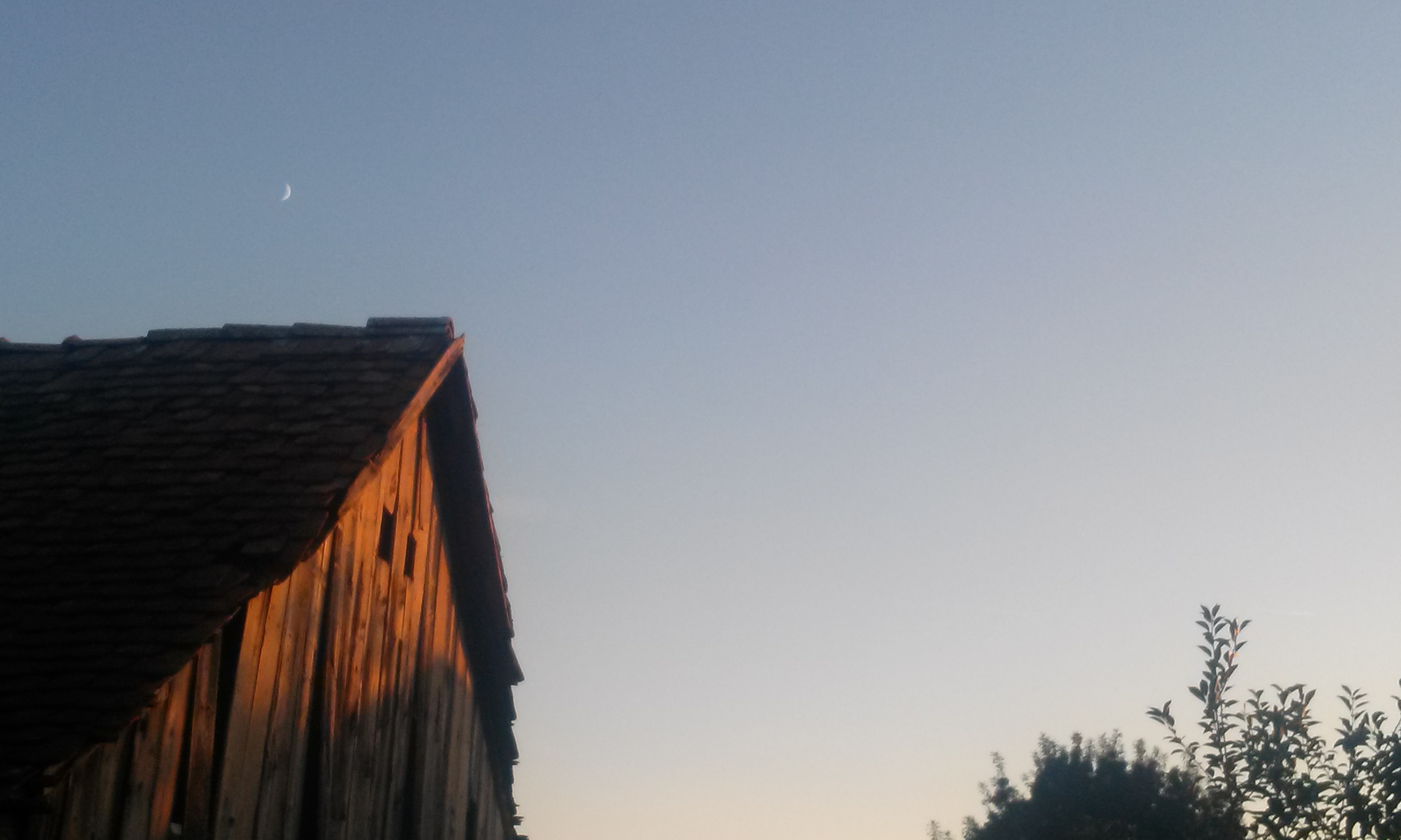Şi că tot am zis de seară, ăsta e momentul în care mă ia virusul fotografiei şi, chiar dacă nu-l am la dispoziţie decât pe „bătrânul” meu LG, mă apuc să umblu prin curte ori prin grădină, în căutarea unor unghiuri bune. Ultima dată am luat în cătare casa vecinilor şi luna ce staţiona deasupra. 😉