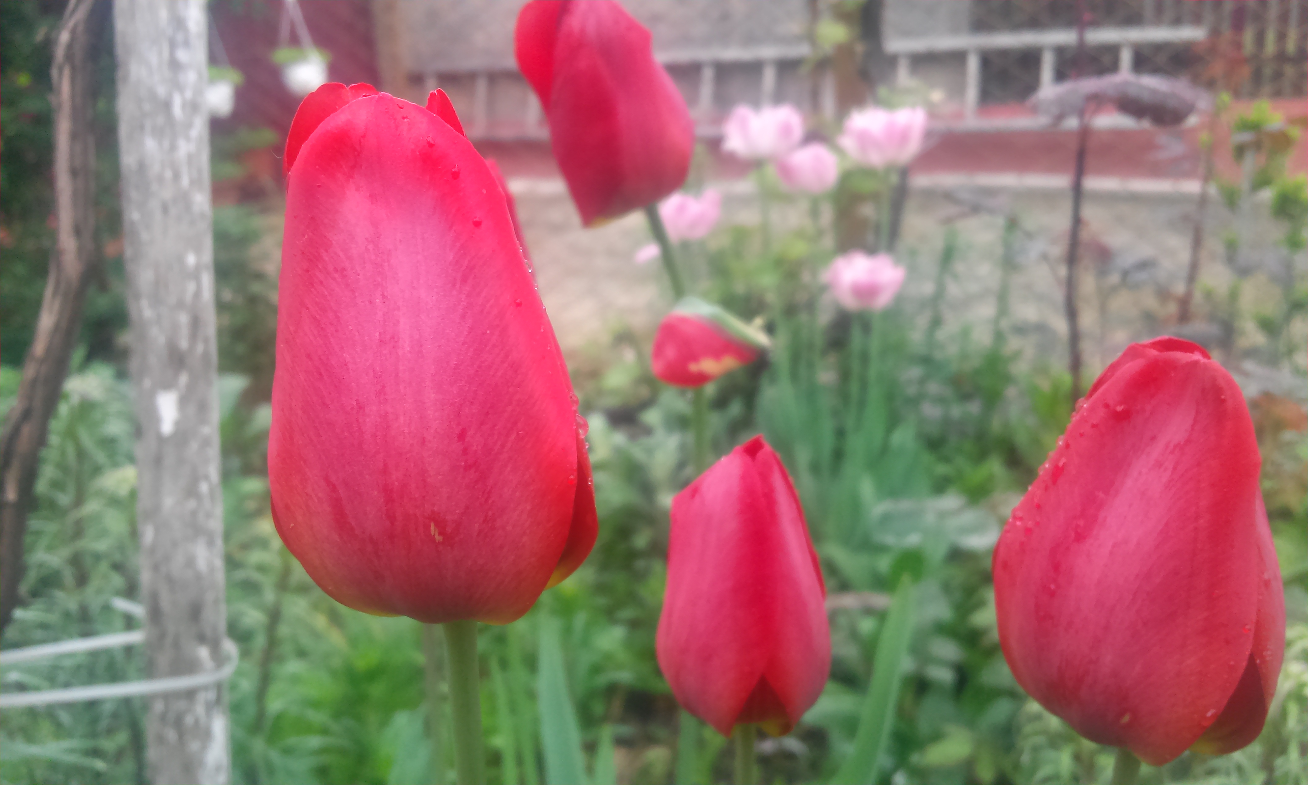 Cum cine? Lalelele din grădina din sat, clar! 🙂 Erau atât de colorate sâmbătă, cu toată ploaia enervantă care a căzut ore bune… Parcă toată lumea era a lor.